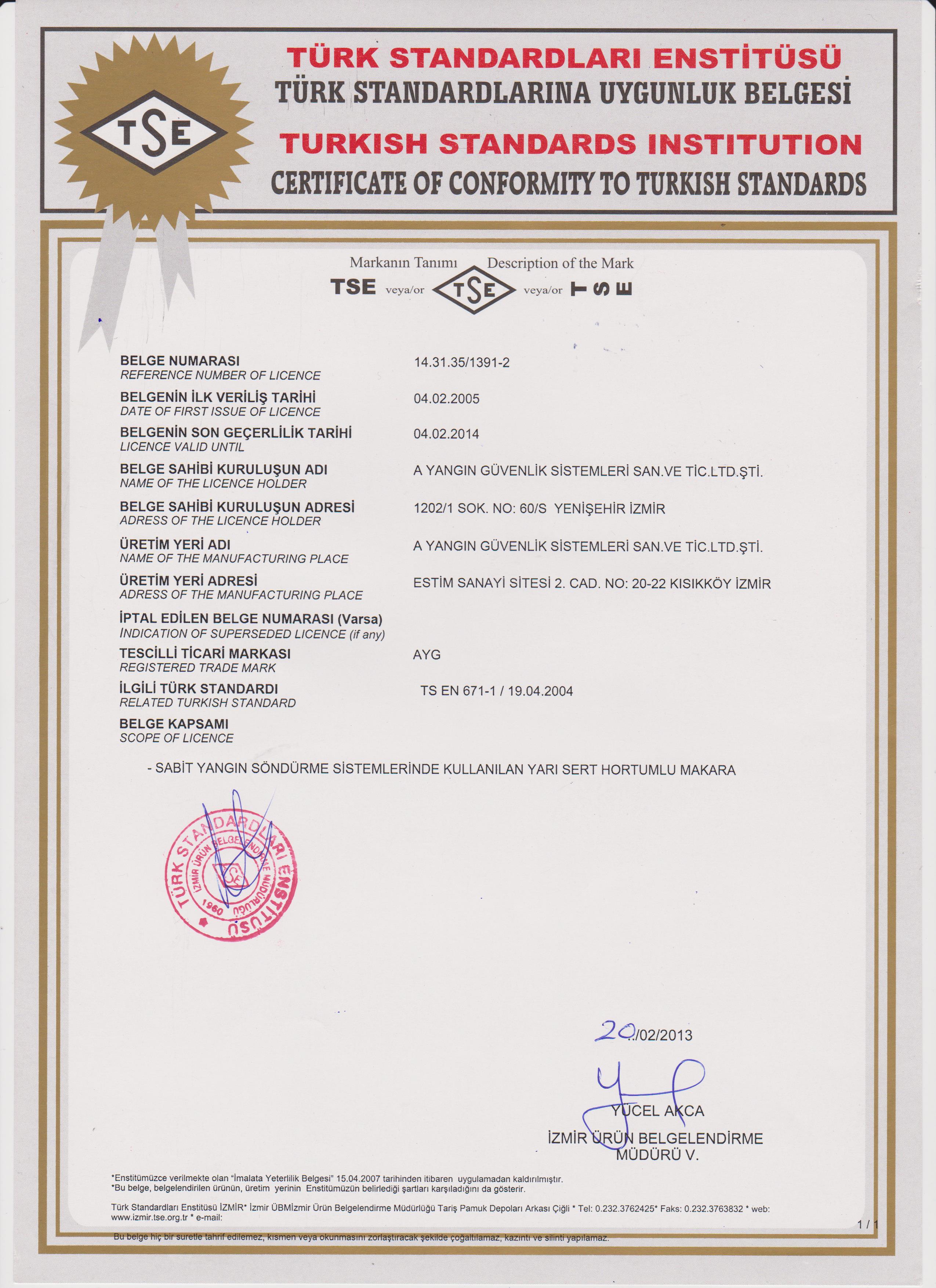 Kalite Onay Belgeleri Bilgiler Köksal Yangın Söndürme Cihazları... Fire Extinguisher...